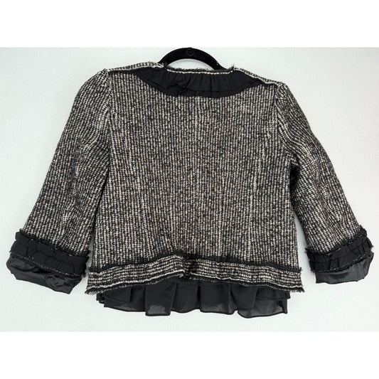Ann Taylor Black & White Tweed Jacket Blazer with Flower Embellishment Size 6