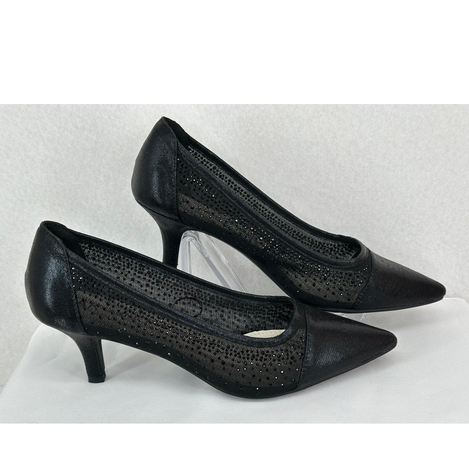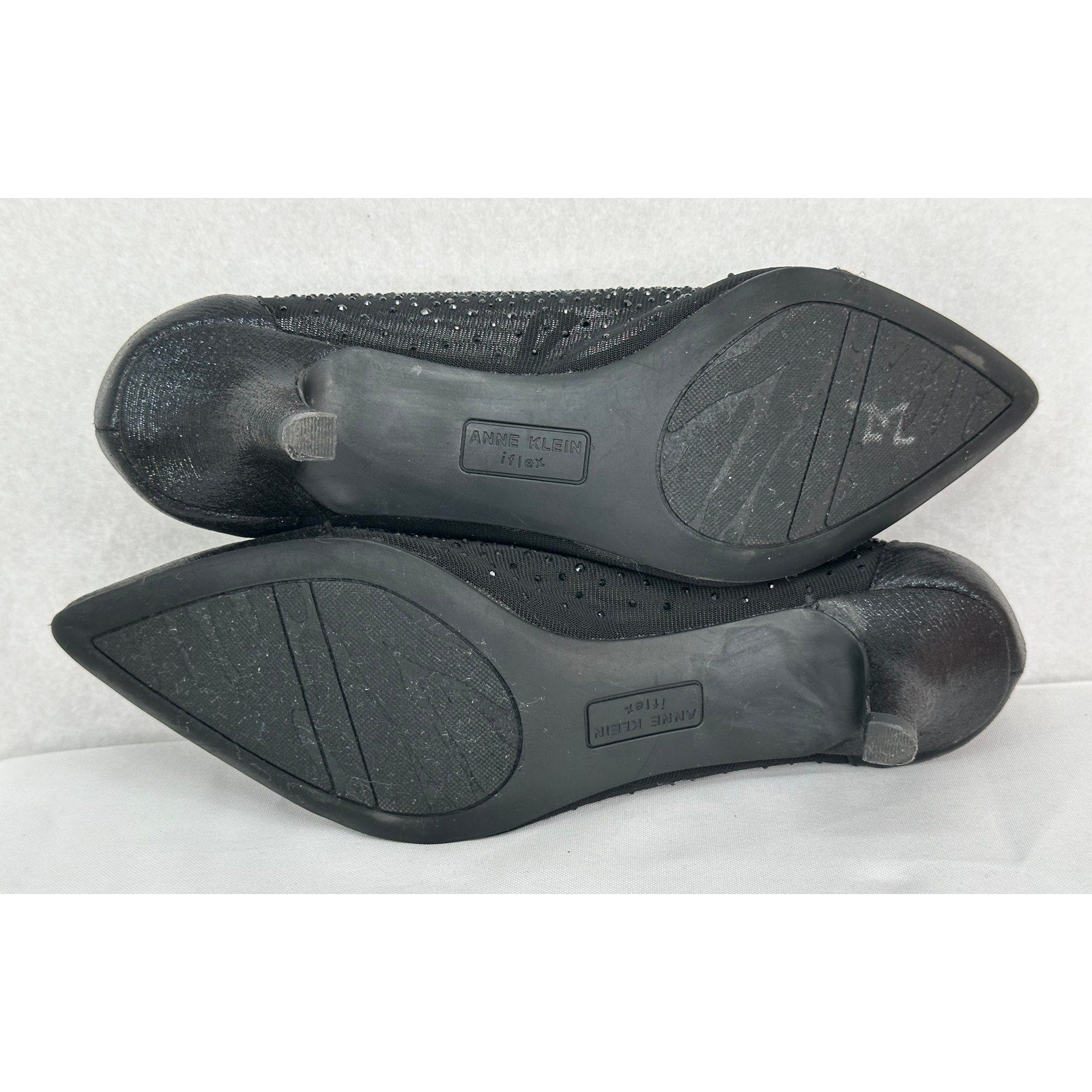 Anne Klein iflex Akfadira Black Pointed Toe Kitten Rhinestone Dress Heels 8.5