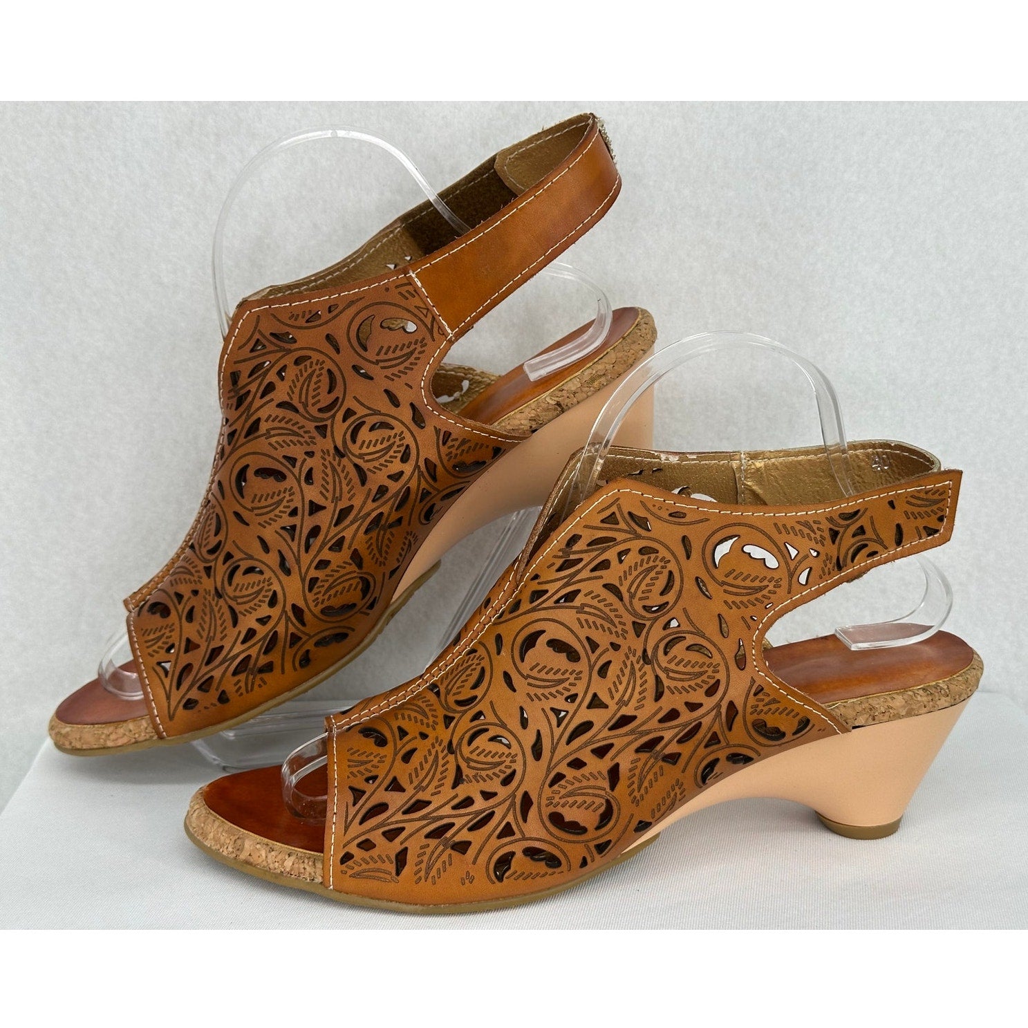 Brown Leather Cut Out Wedge Sandals 40 (9)