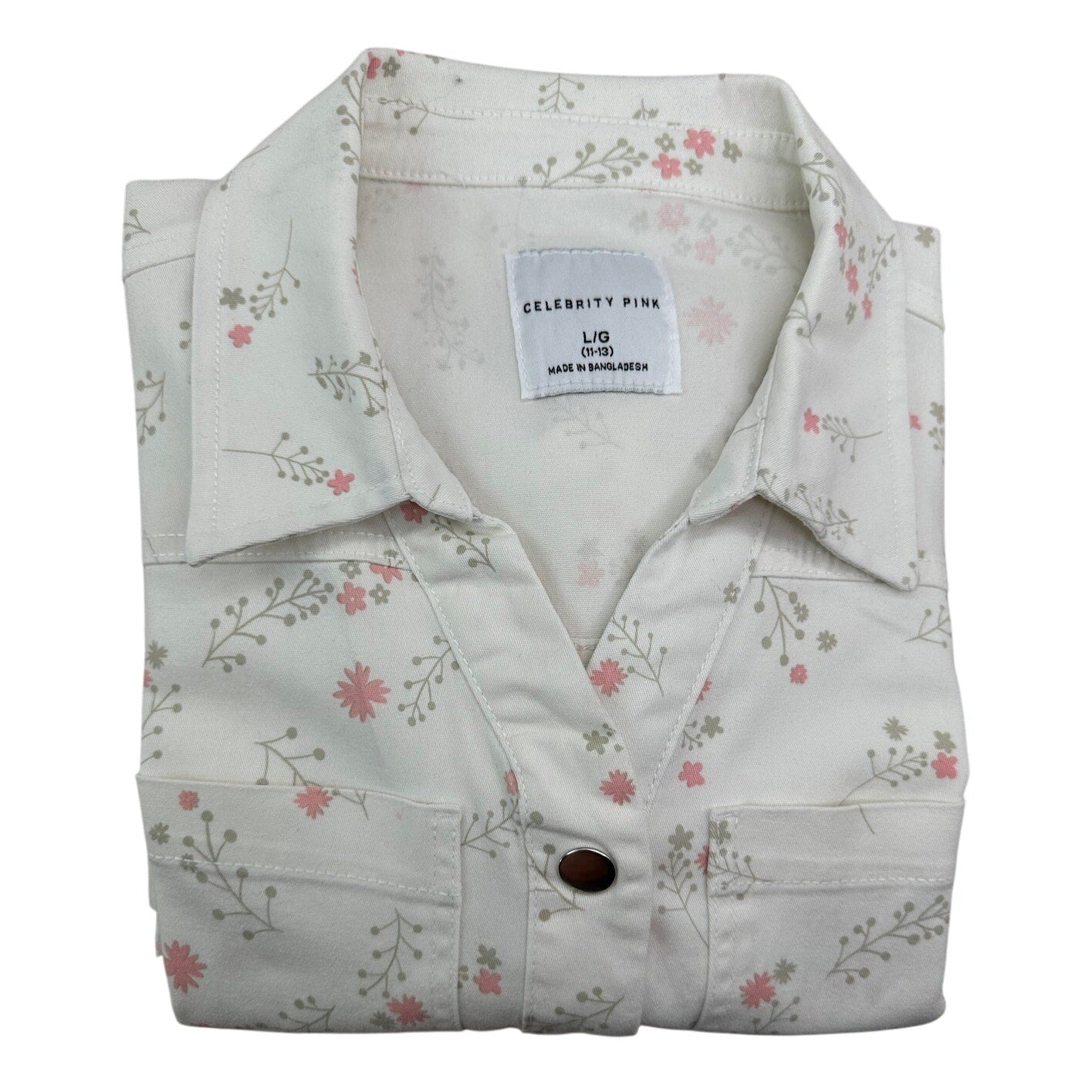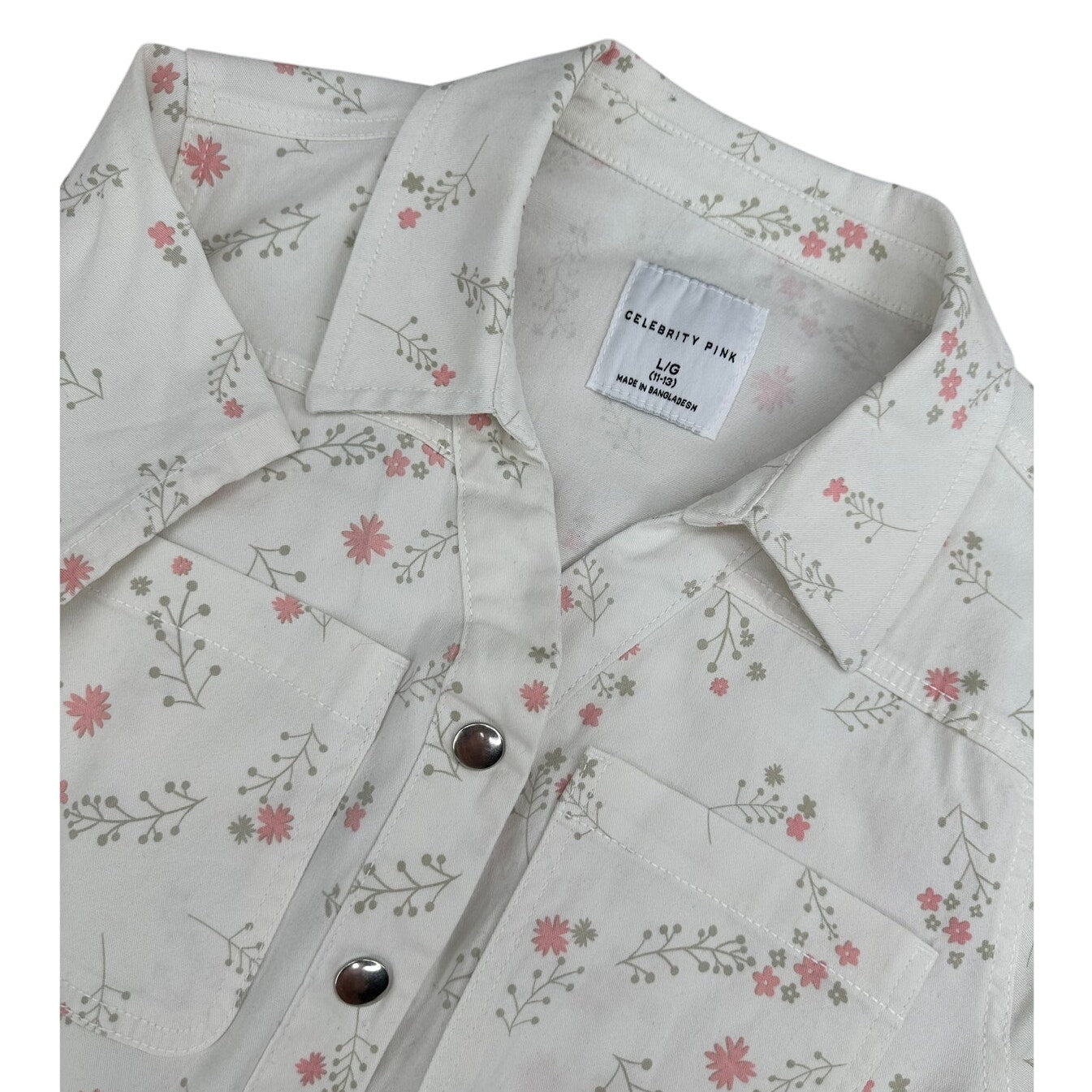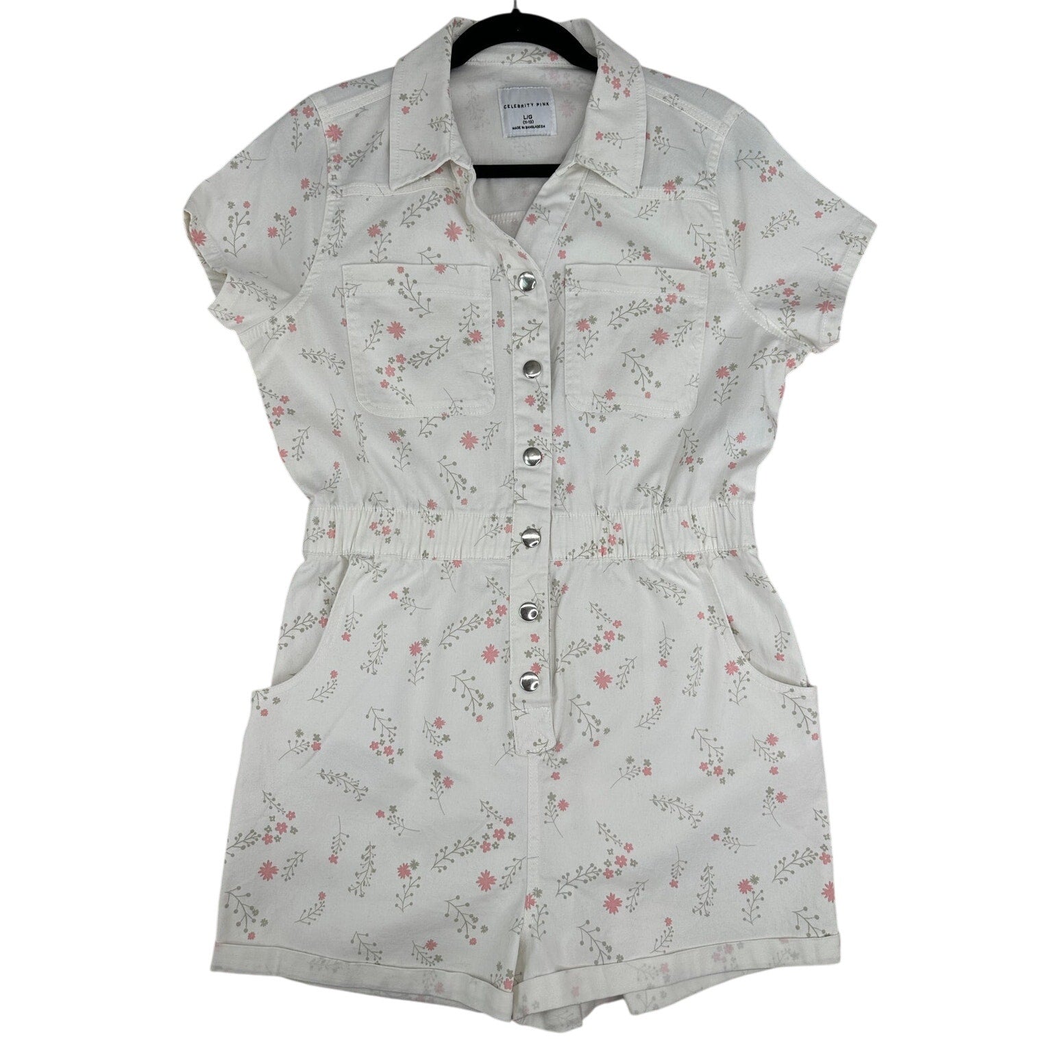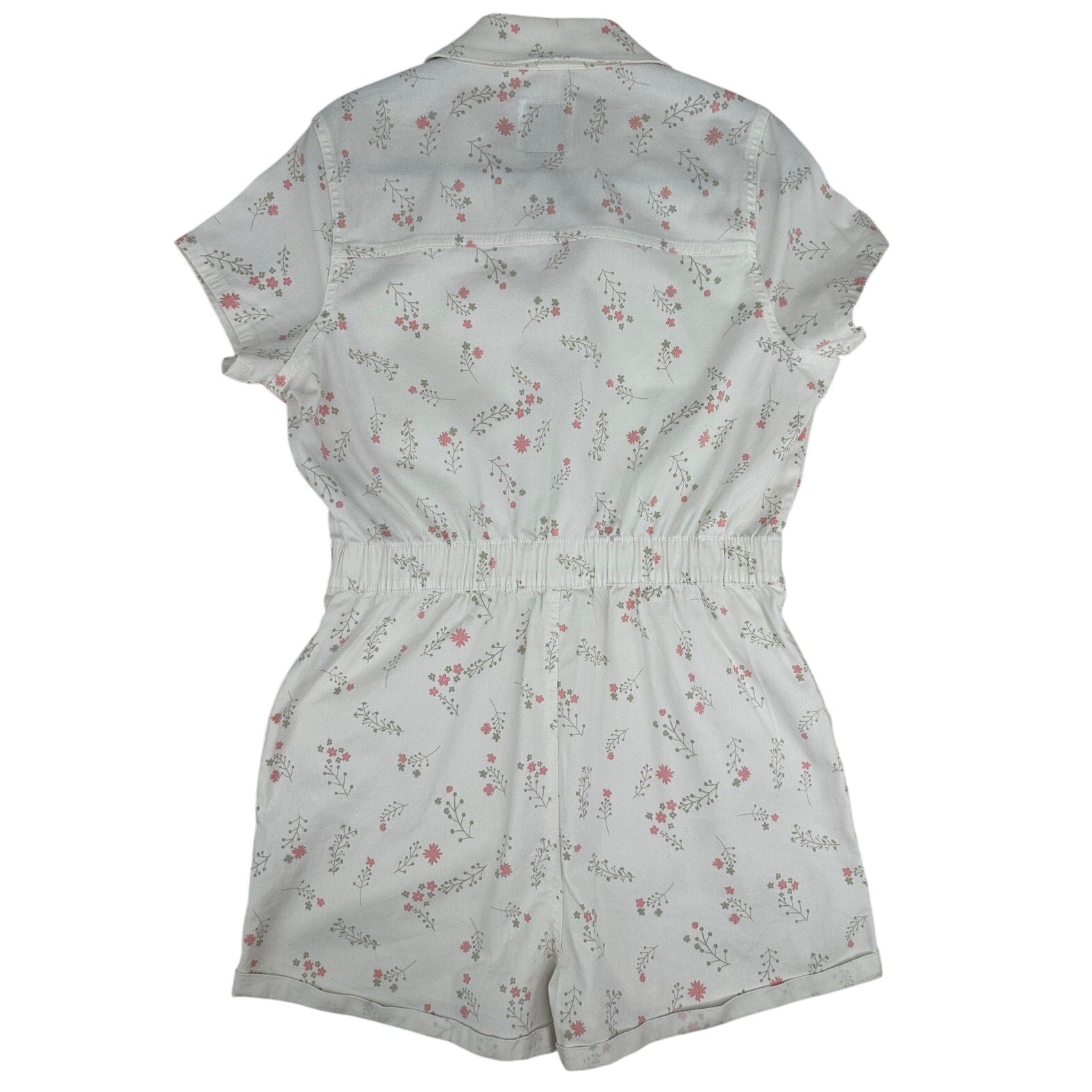 Celebrity Pink Cream with Pink Flowers Short Boilersuit Romper Button Up L 11-13