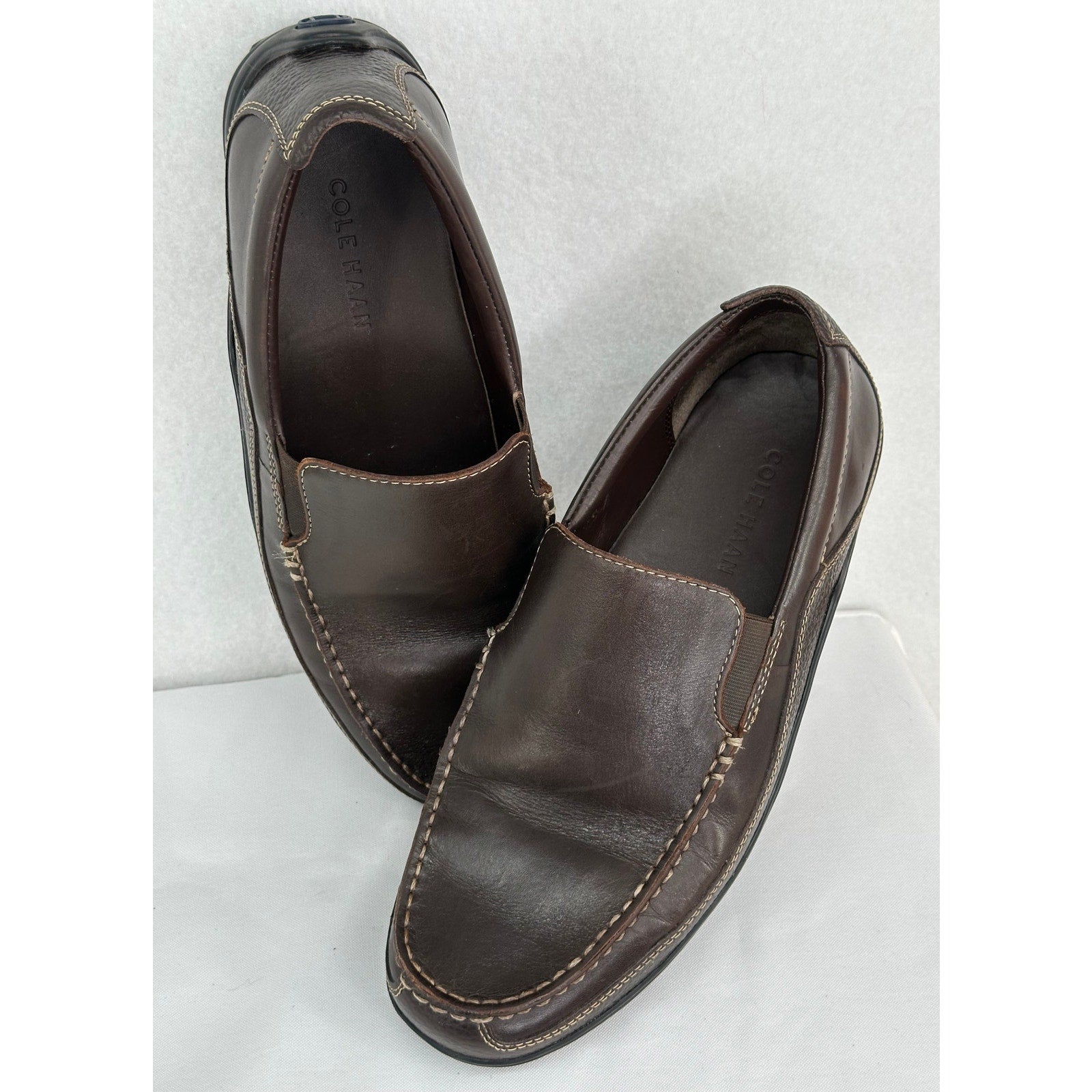Step out in style with these Cole Haan Tucker Venetian Leather Loafers! These stylish slip-ons are perfect for any casual occasion. The dark brown leather offers a classic look. They are in great shape and ready to wear. Grab them today and add a touch of sophistication to your wardrobe!