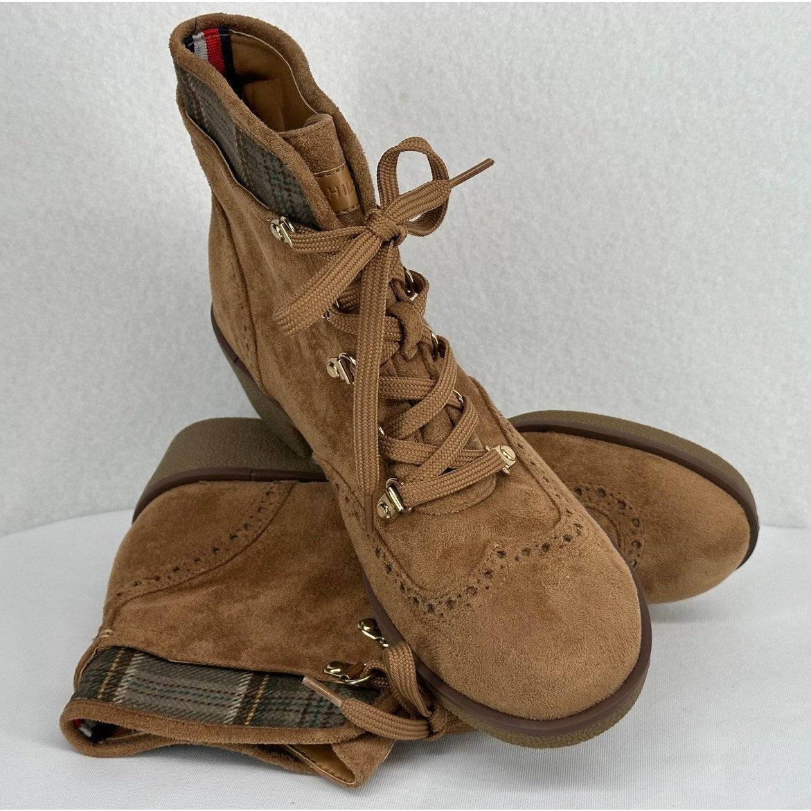 Tommy Hilfiger Twyazi Plaid Wingtip Faux Suede Hiking Boot NWOT 6.5M