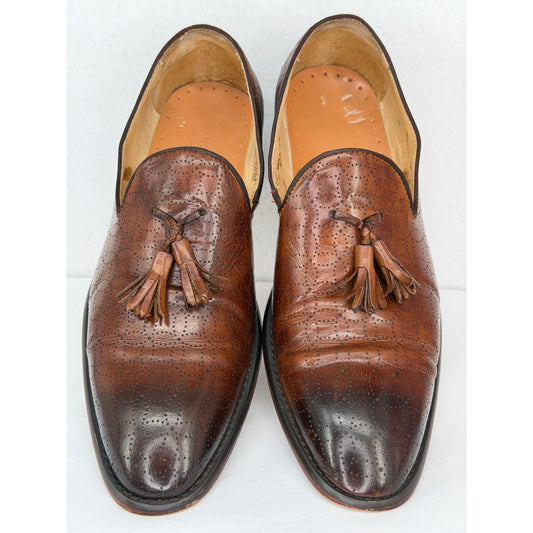 Asher Green Hand Made Brown Leather Tassel Slip On Dress Loafers 8.5